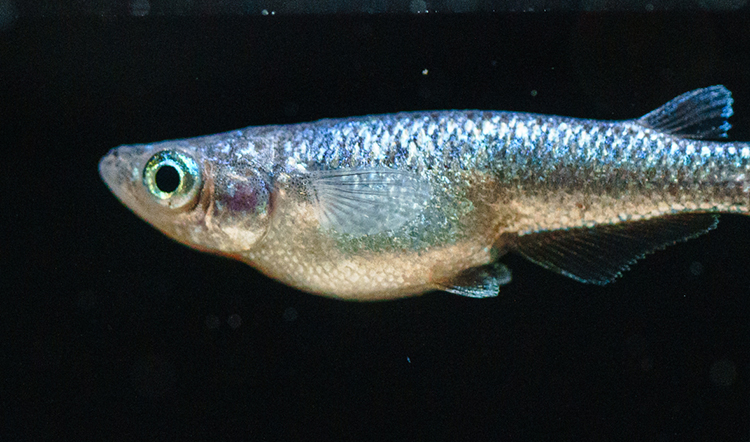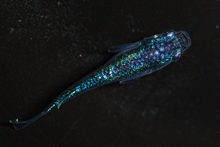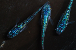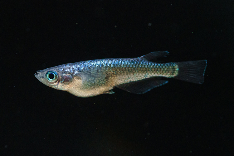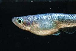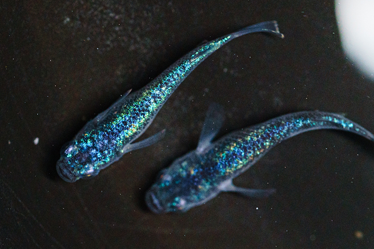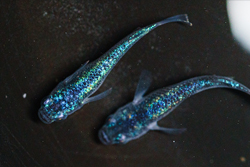 海王星(ネプチューン)の名がしめすように全身びっしりと入る青いラメがとても美しいメダカです。特に頭部は青い発色が強く、青系メダカの中でも群を抜いて美しい品種のでメダカです。横からみても良いですが、上見で背中~頭部の美しさを楽しむのがおすすめです。